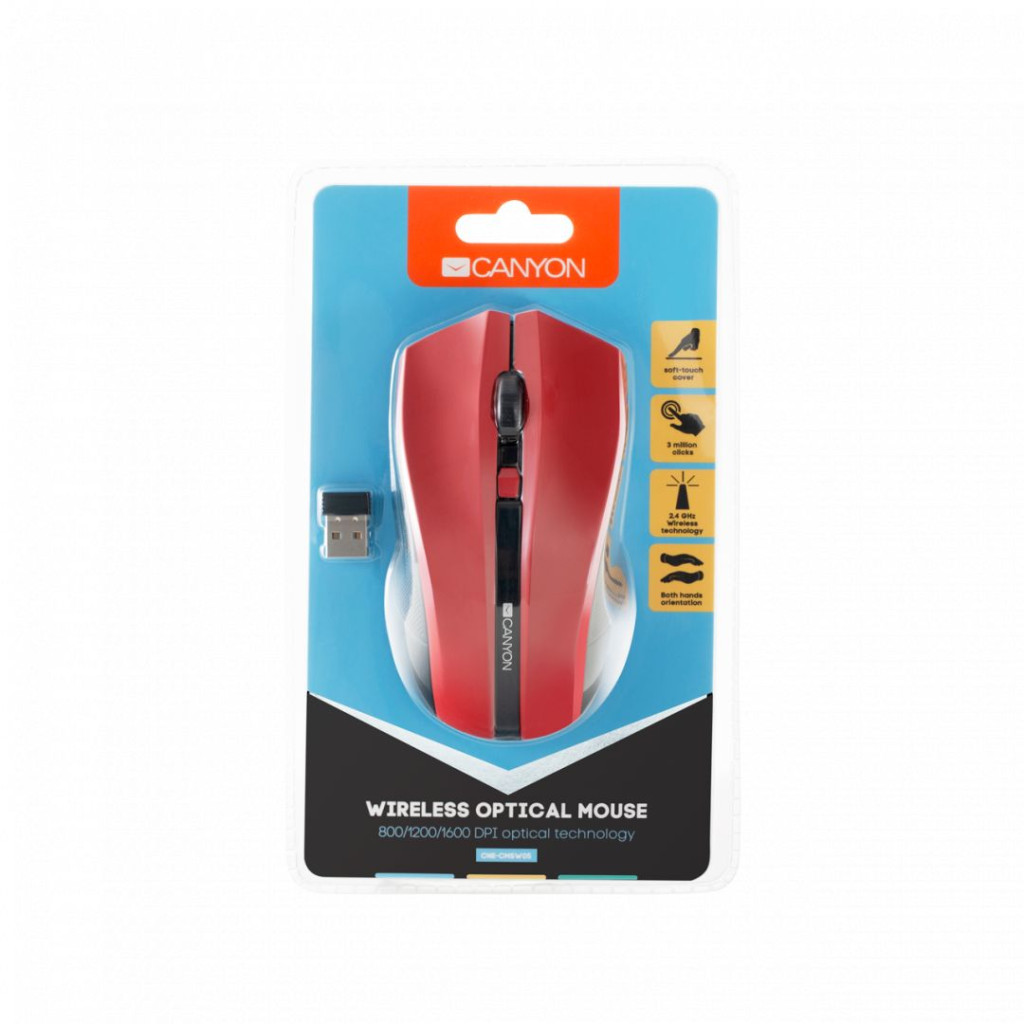Canyon CNE-CMSW05R wireless mouse Red/Fekete