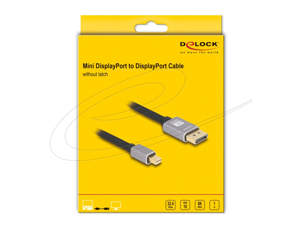 Ezzel a Delock DisplayPort kábellel a DisplayPort interfésszel rendelkező eszközök, például monitorok, kivetítők vagy televíziók csatlakoztathatóak egy mini DisplayPort interfésszel rendelkező személyi számítógéphez vagy laptophoz.